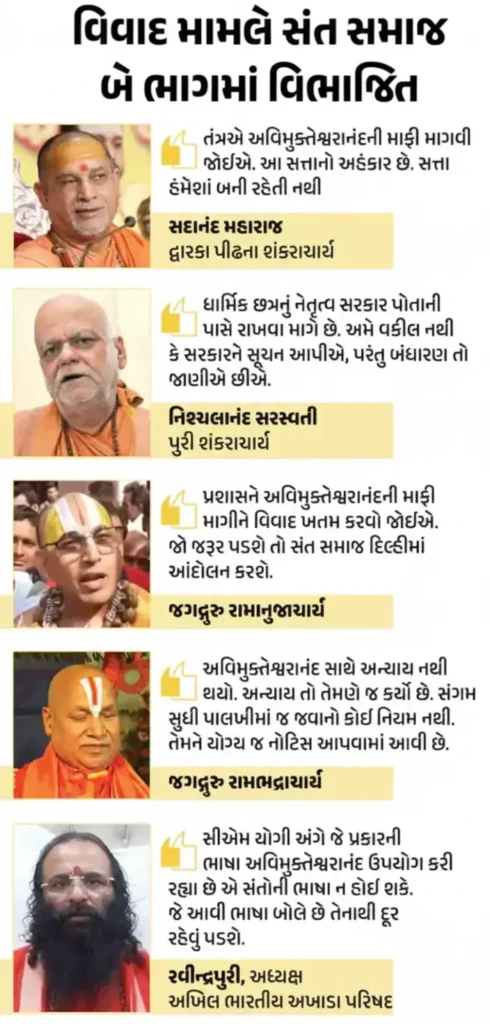 પ્રાયાગરાજમાં મઘ મેળા દરમિયાન સંત અવિમુક્તેશ્વરાનંદ અને માઘ મેળા પ્રશાસન વચ્ચે તણાવ વધ્યો છે. અવિમુક્તેશ્વરાનંદે જણાવ્યું કે જ્યાં સુધી પ્રશાસન માફી નહીં માંગે, ત્યાં સુધી તેઓ વસંત પંચમીનું સ્નાન કરશે નહીં. તેઓએ કહ્યું, “પ્રશાસન માત્ર નોટિસ-નોટિસની રમત રમ્યું છે. હજુ મારું મૌની અમાસનું સ્નાન પણ થયું નથી, તો હું વસંતનું સ્નાન કેવી રીતે કરું?”