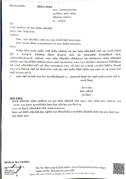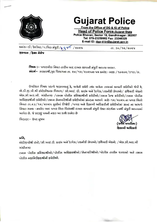 - ડીસેમ્બર 2025ના પગાર બિલ મોડા દાખલ થવાને કારણે આ મહિને પોલીસ કર્મચારીઓના પગાર સમયસર ન મળી શકે.